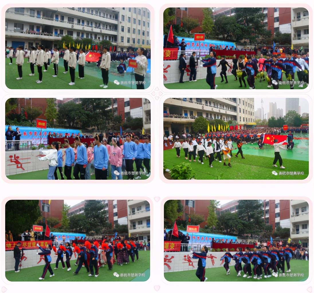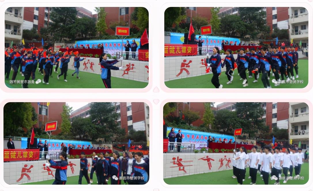 在振奋人心的音乐声中,各班级组成的方阵踏着整齐的步伐进入运动场,他们英姿飒爽,意气风发,口号响亮,步伐矫健,每支参赛队伍都不甘示弱,用健美操、舞蹈,竞相展示风采!