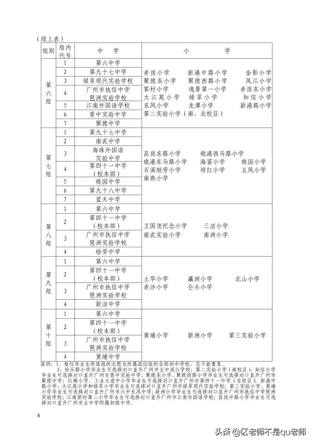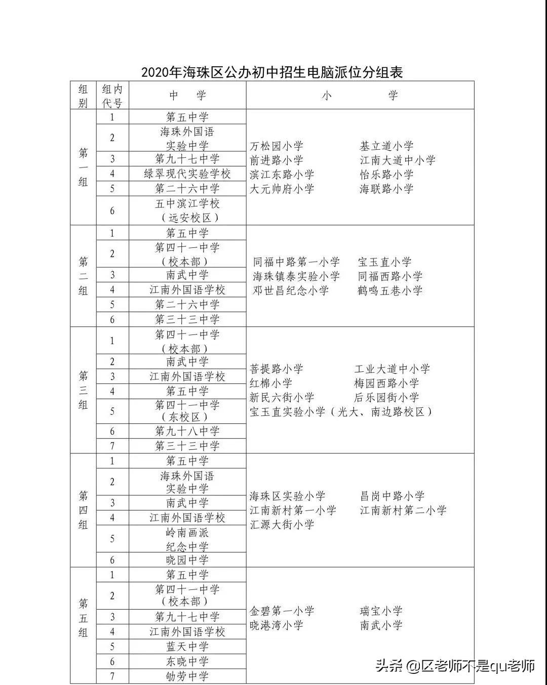 2、原在第二组的西关外国语小学部、在第5组的体育实验小学被划去了。