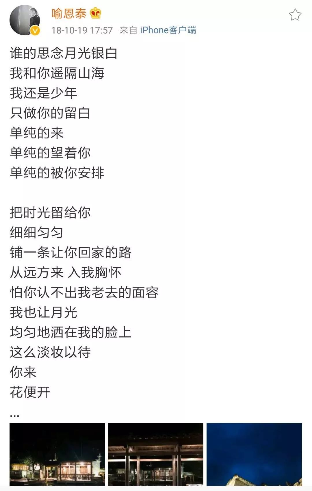 因为比较低调,他很少在微博上做宣传发动态。