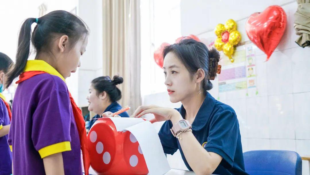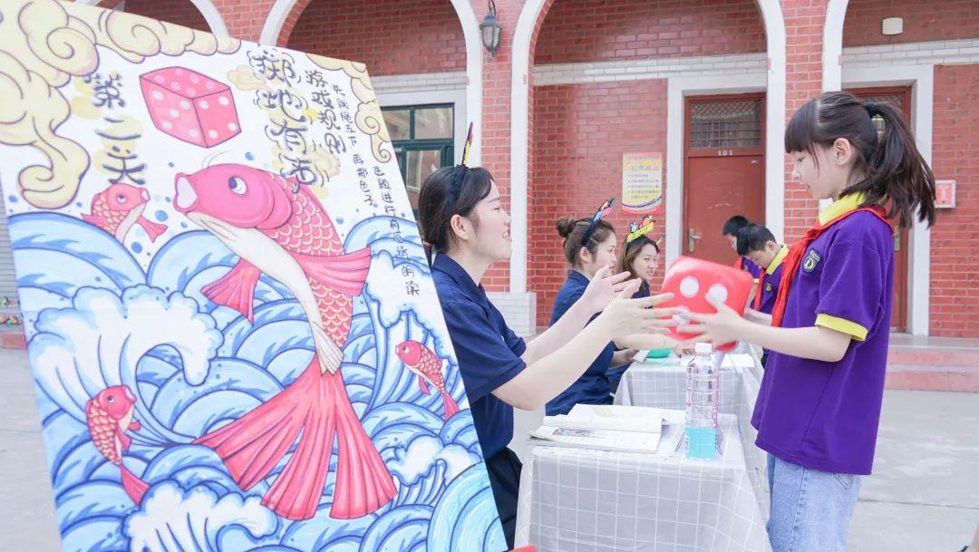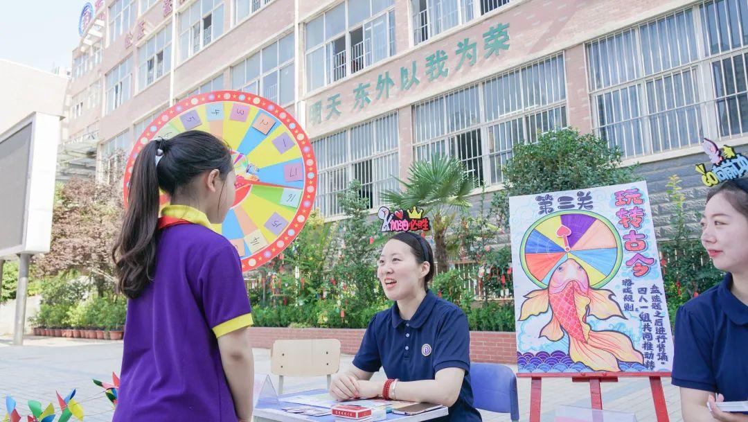 老师们精心策划、集思广益,为学生设置了重重趣味关卡,借助跳房子、抽题箱 、骰子等道具进行题目抽选,“翻转词卡”考查学生正确迅速识字、拼字与敏捷联想词义的能力;“金话筒演讲”检验学生的语言驾驭能力和表达能力;“扑克牌”抽检学生们对经典古诗词的积累与掌握......