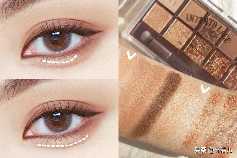 卧蚕是清冷感烟熏妆的关键,可以让降低眼妆的锐利感、增加随性feel~我们可以用珠光色调进行提亮,让卧蚕更加明显,建议选择较细致的、偏暖色调的眼影,涂抹在下眼睑卧蚕前半段,接着再用阴影色调上在卧蚕下方,轻轻画出一条阴影线,看上去更加细致!