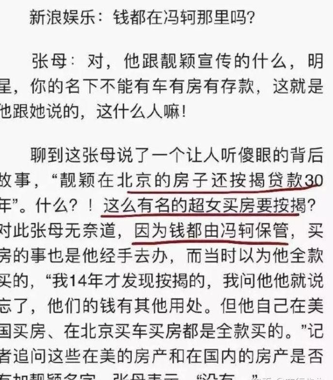 不仅如此,就连张靓颖提出给自己买套房子,冯轲也只是拿出30%的首付,其余的让她按揭付清。