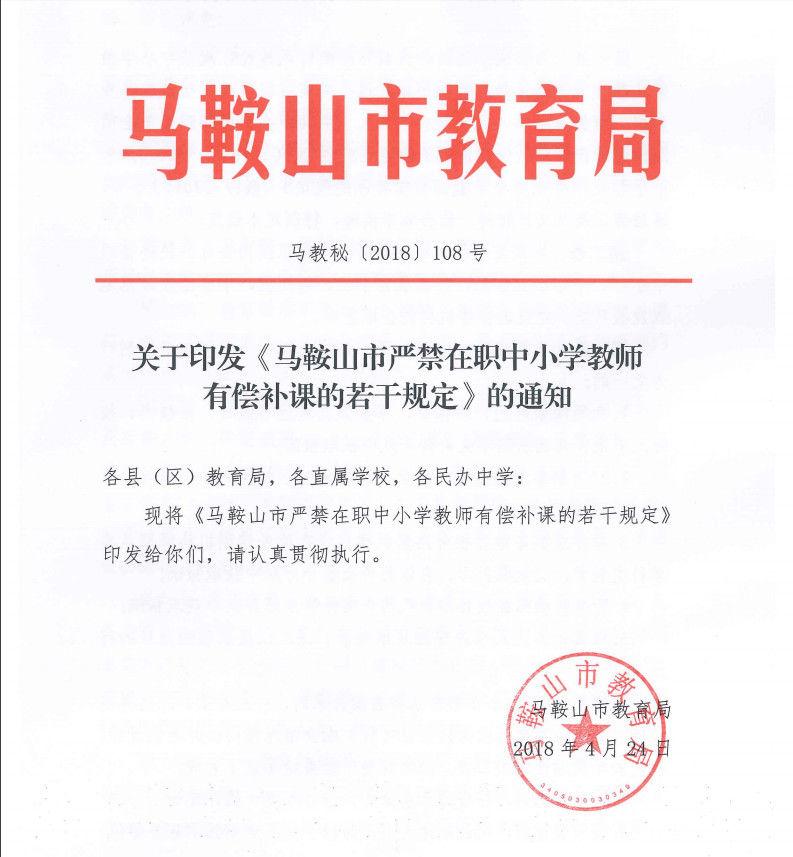 《马鞍山市严禁在职中小学教师