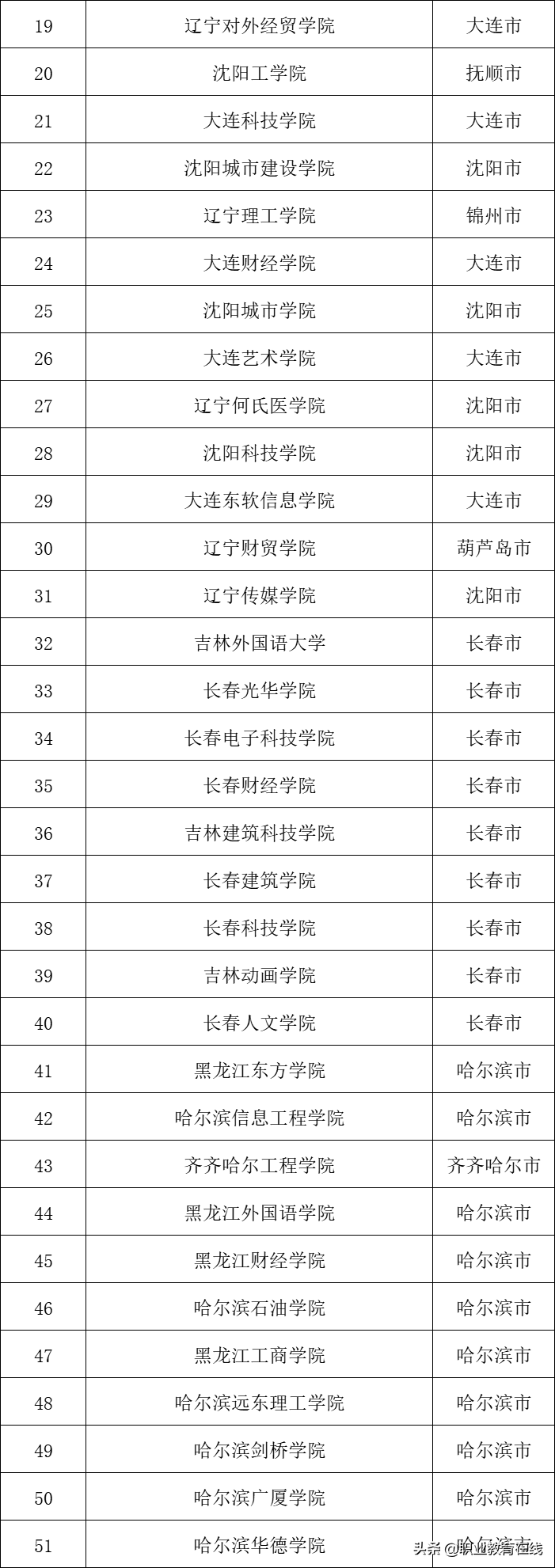 2.东北地区民办普通本科大学名单(33所)