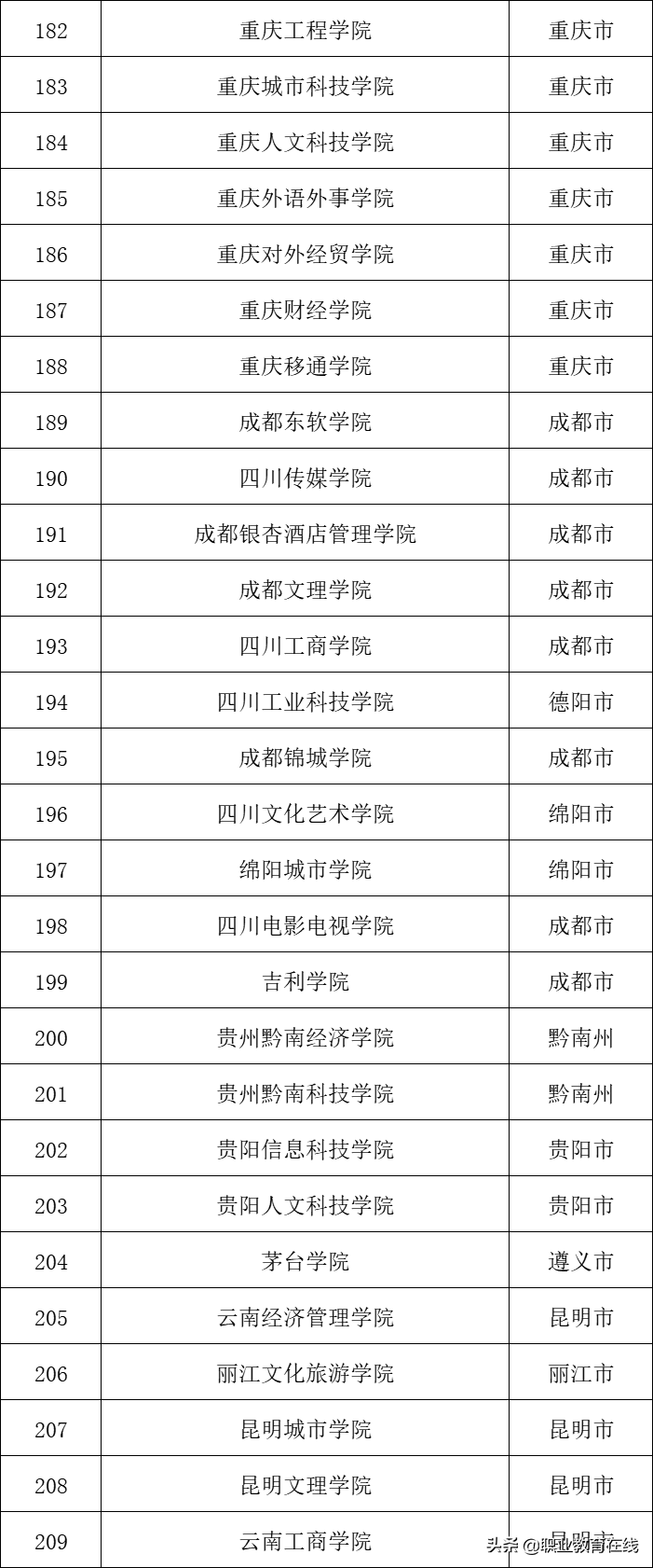 6.西南地区民办普通本科大学名单(28所)