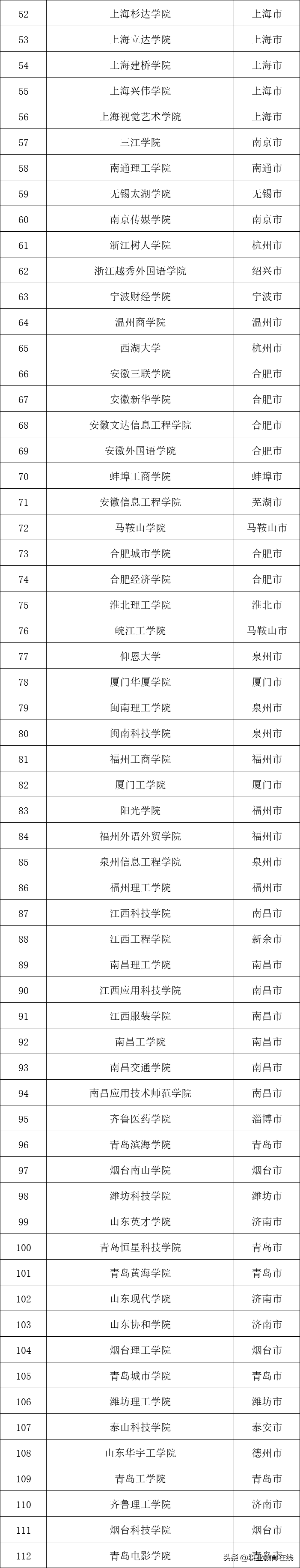 3.华东地区民办普通本科大学名单(61所)