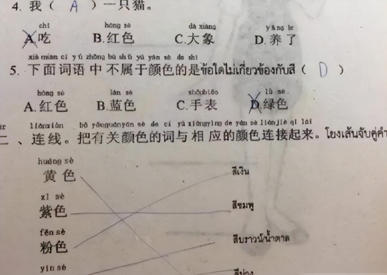 外国学生才学习中文不久,对中文语言表达的意思没那么好掌握是正常的,就像我国学生刚学习英语记不住读音一样,看着他们的试卷是觉得很有意思。
