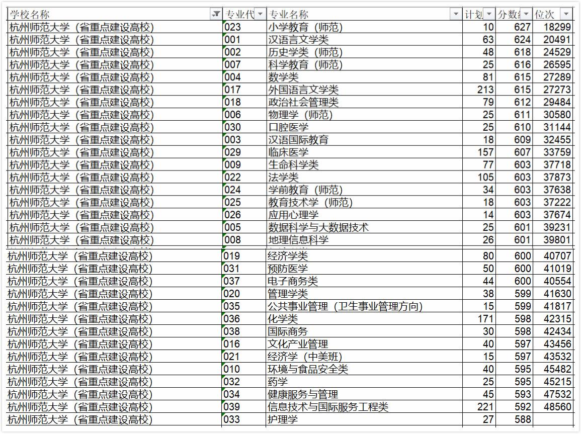 小编再附一份杭州师范大学2018年普通录取的数据,小伙伴们可以参考一下: