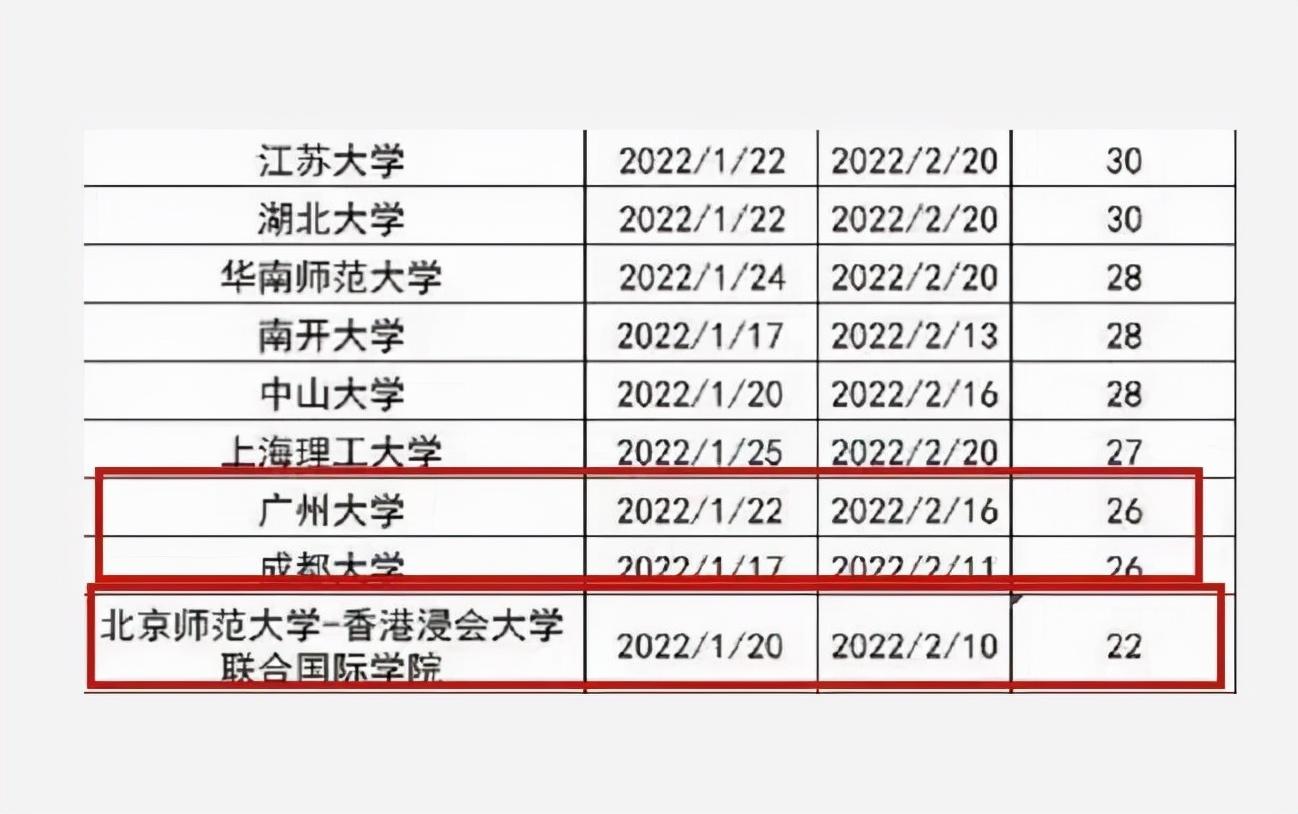 除了超长假期和正常假期之外,也有7所学校假期不足一个月,其中最“惨”的就是北京师范大学-香港浸会大学联合国际学院,假期只有22天。