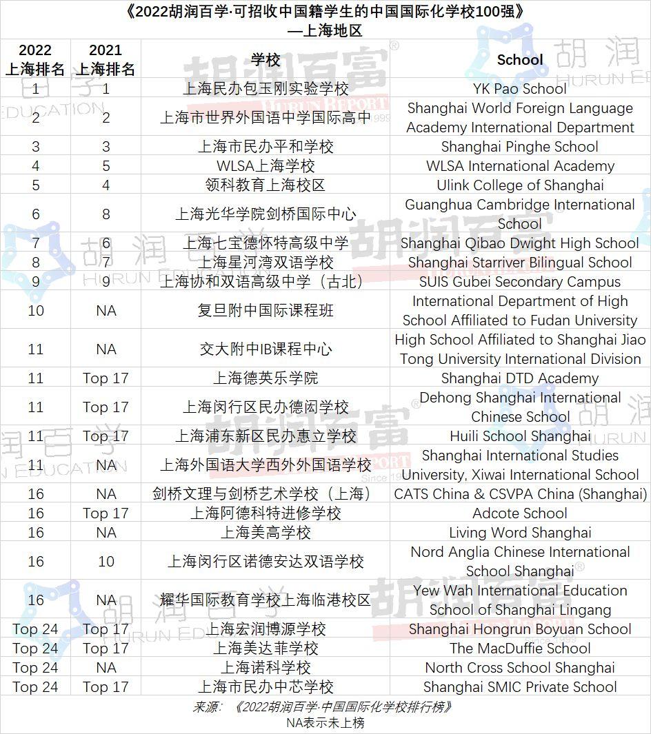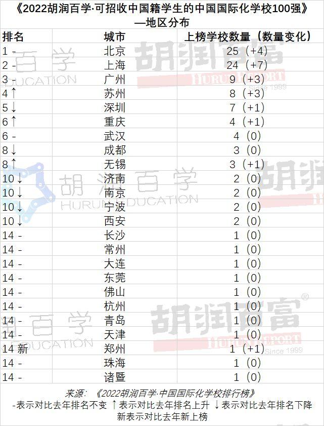 胡润百富旗下国际教育平台胡润百学上周正式发布《2022胡润百学·中国国际化学校排行榜》。今年的排行榜和去年一样,分为了《2022胡润百学·可招收中国籍学生的中国国际化学校100强》和《2022胡润百学·中国外籍人员子女学校30强》(注:去年分别为80强和20强)。这是胡润百学第五次发布中国国际化学校”排行榜。