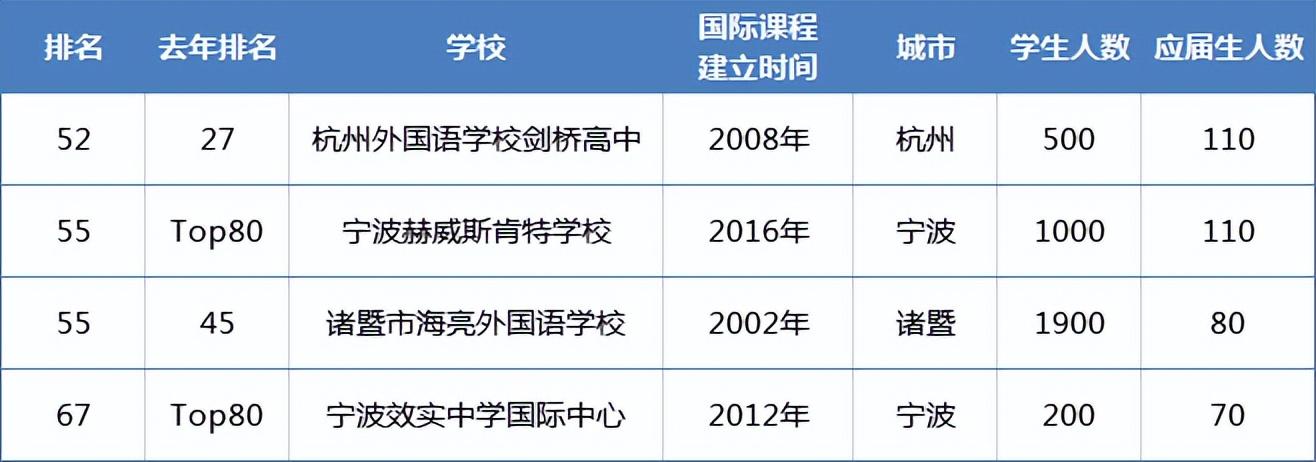 宁波赫威斯肯特学校全国第55。是一所经宁波市教育局审批的全日制民办双语学校,依托两所百年老校(浙江省镇海中学和美国巴斯图学校)的教育资源创办而成。学校秉承镇海中学科学严谨的教育管理制度、丰富的教学资源和美国巴斯图学校先进的教育理念。目前有1000名学生。