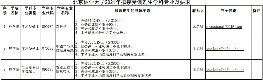 21年北京林业大学接收了调剂的专业(全日制)>>