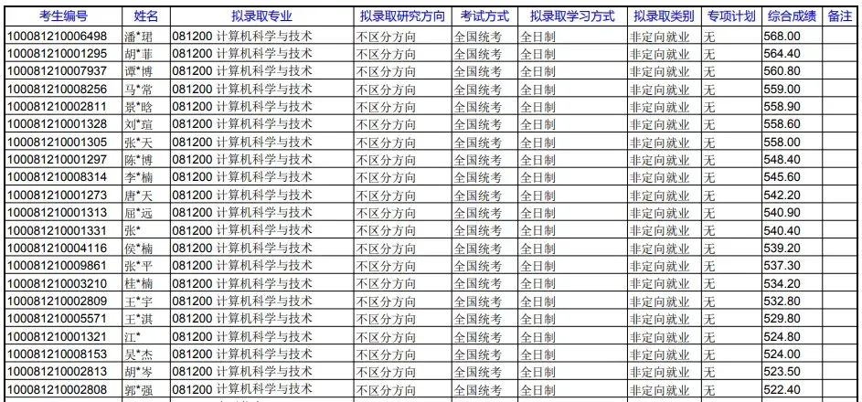 我们以调剂中的计算机科学与技术为例,看看具体的报考情况: