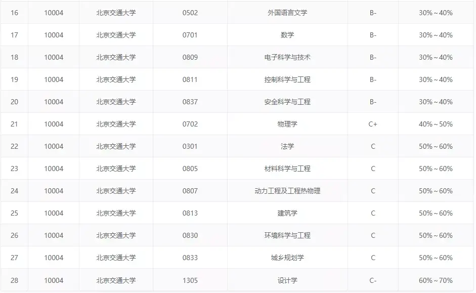 北京交通大学的学科实力算是相对不错的,但可以看到,优势学科大部分集中于理工科类,