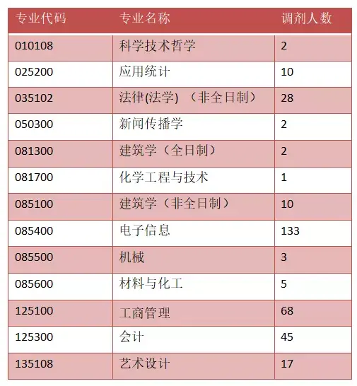 和法学一样,上面列出来的招收调剂的专业都存在报不满的情况,捡漏的机会多多!