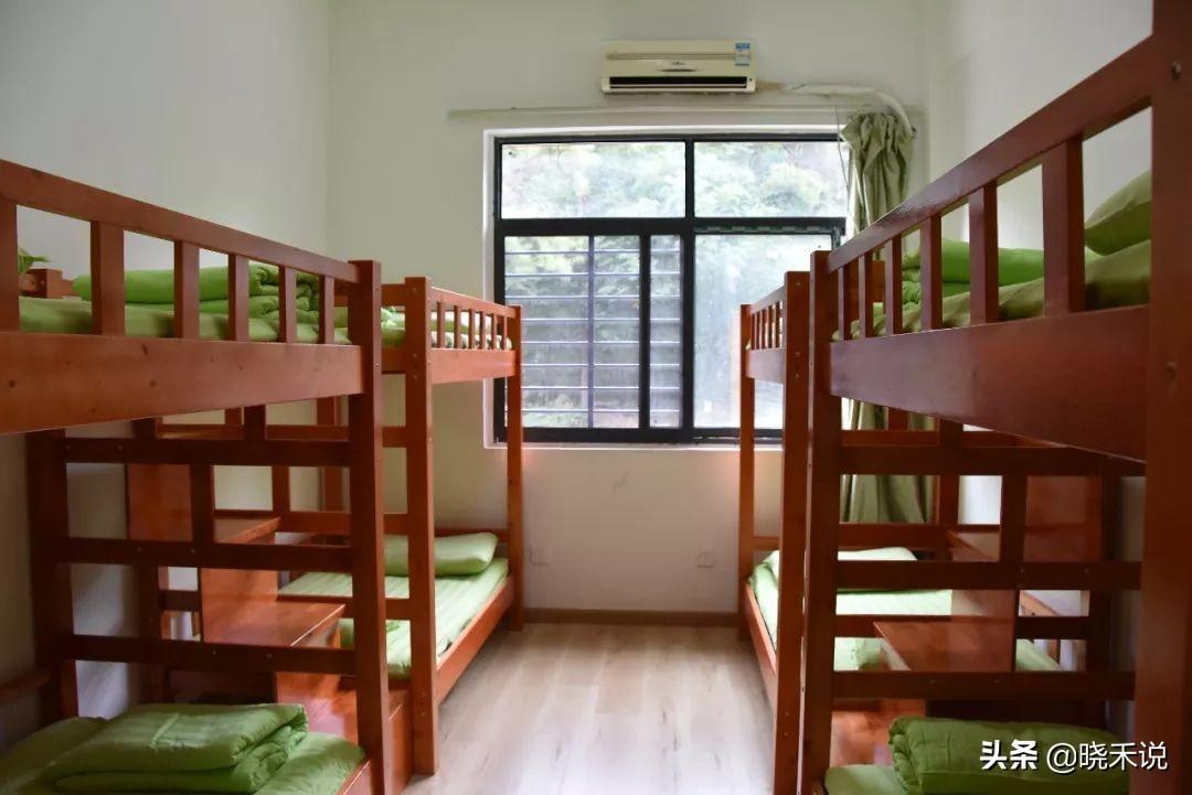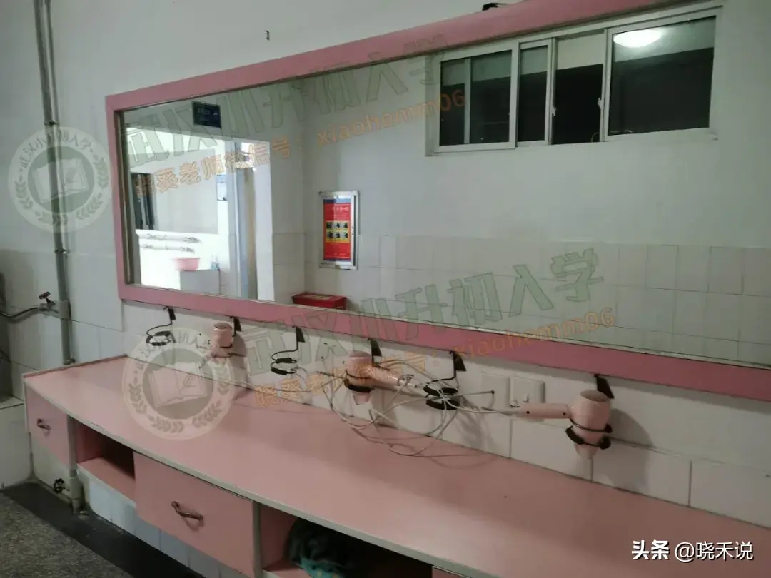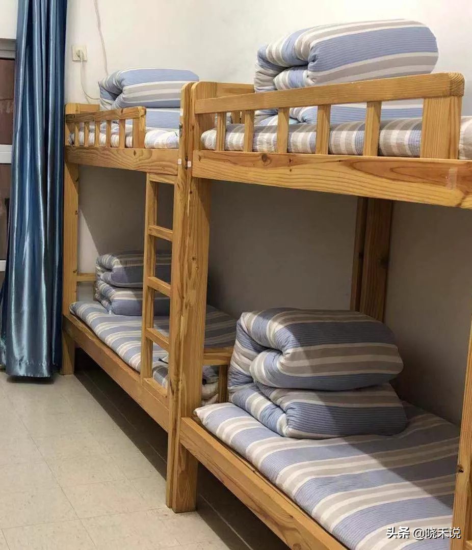 A:据悉,宿舍是一层楼一个大的卫生间,每个有隔层,有门。浴室里有帘子,每个淋浴头之间也是有隔开的。不过很干净,每天早上都会做清洁。洗澡是在下午四点到六点哦,有的是先吃饭再洗澡,有的是先洗澡再吃饭。所以刚好错开,不需要排队。夏天寝室八个人,一般不会住满。有两个电扇,每个寝室配备一台空调,挺舒服的。十点熄灯之后老师会查寝,点清人数。如果熄灯之后讲话,开手电筒,玩手机是会算违纪的,会扣分。打电话在熄灯之前打完。带老人机是可以的。床90cm宽。没有桌椅板凳,因为寝室是休息用的。柜子一个人一竖条,像医院里那样,木头制的。长1.9m,可以去超市买床垫,如果不怕热就垫两层一开始军训会舒服一些的。