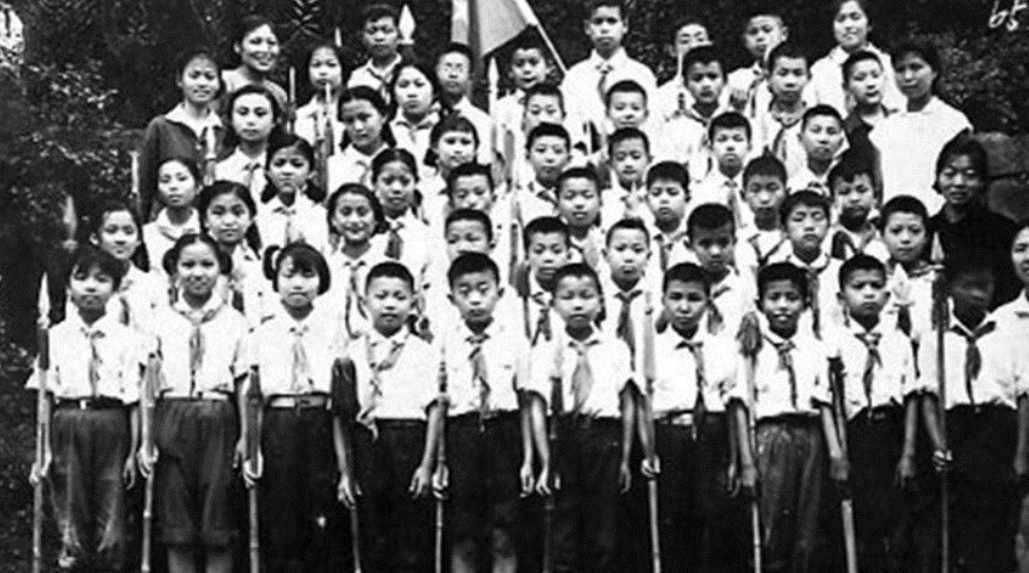 进入70年代,学生的校服大多是白色衬衫+短裤+红领巾,也非常有年代气息,看上去很精神。