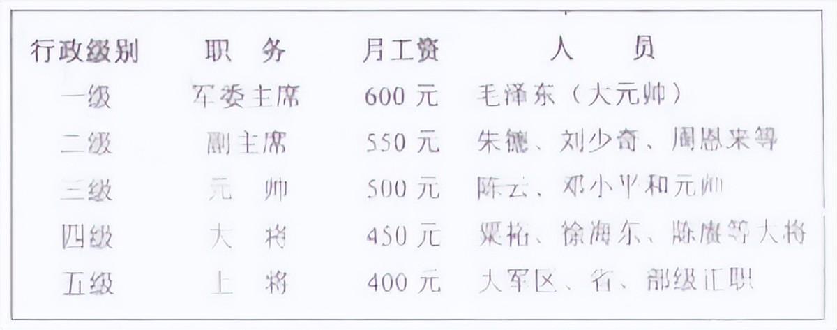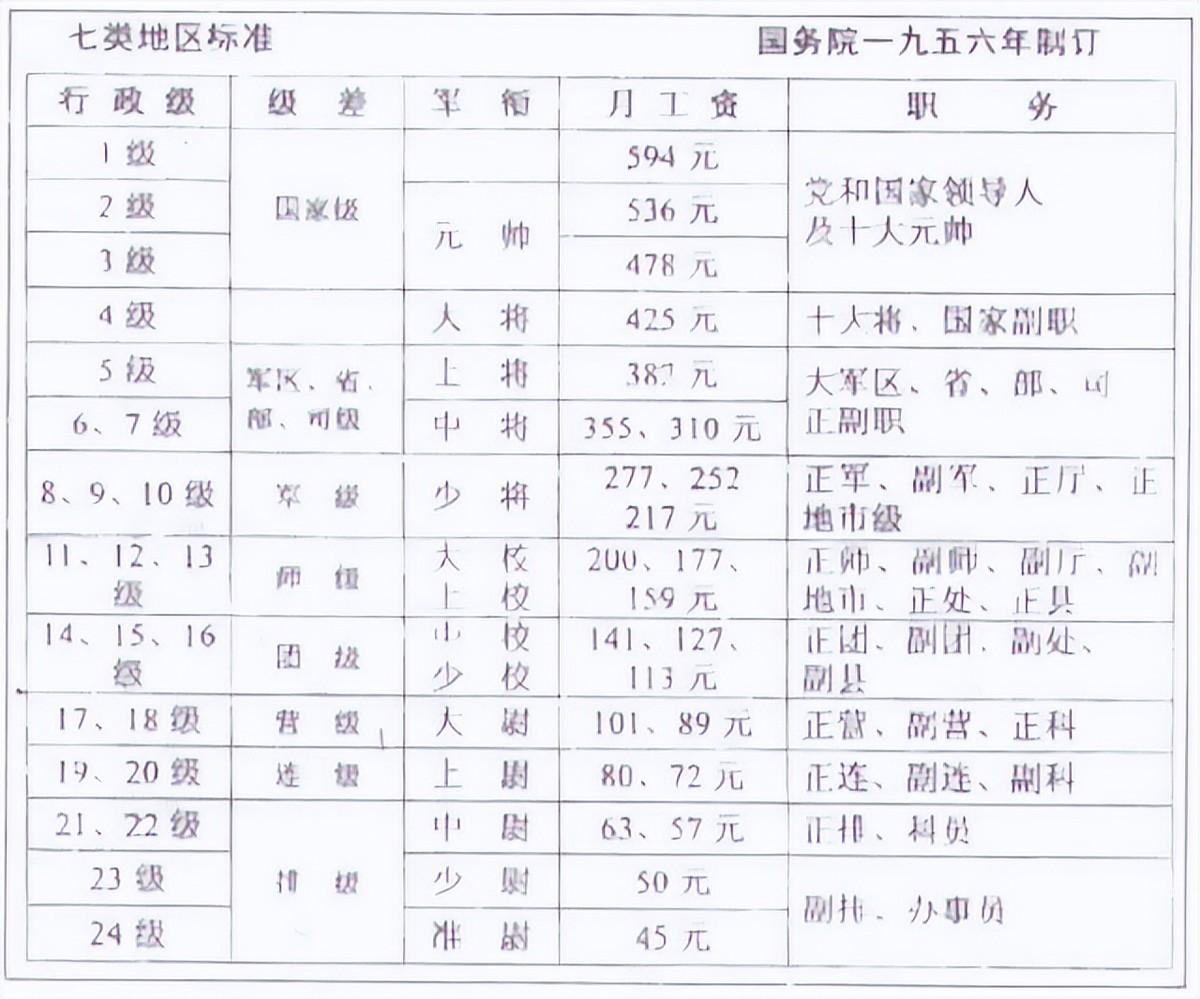 当时我国正在进行全国性的工资改革,计划废除“工资分”,改行“工资制”。为了更好地与工资制相对应,政府对包括军官在内的国家干部进行了行政分级,不同职务对应不同的行政级别。具体如下: