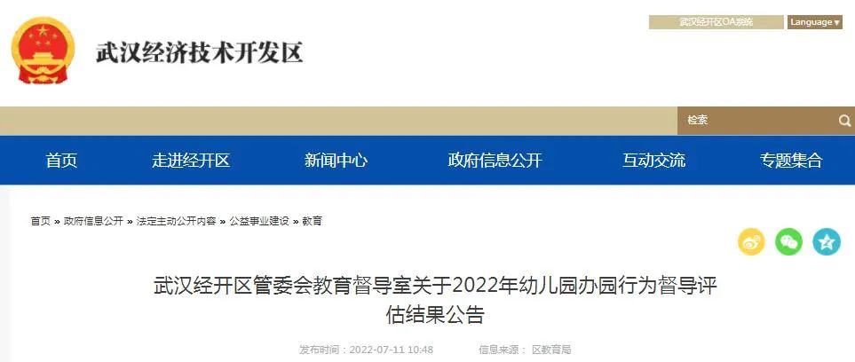 武汉经开区管委会教育督导室关于2022年幼儿园办园行为督导评估结果公告