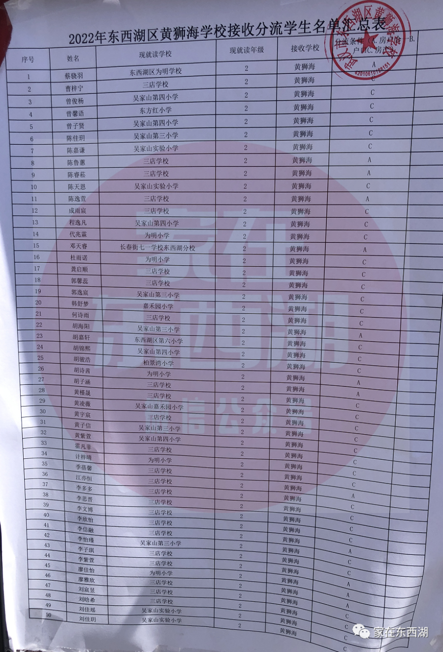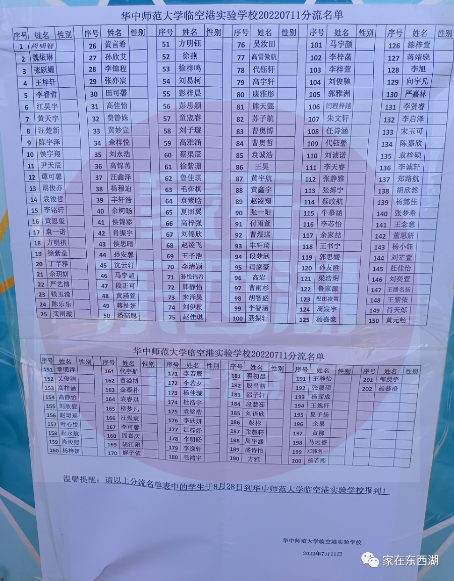 大家好!根据东西湖区2022年新增年级学生分流工作的通知要求,经学校初审,区教育局复合,学校已于今天(7月11日)上午9点将2022年新增年级(3-5年级、7年级)学生分流名单情况张贴至学校南门、西门,请家长们前往查询。