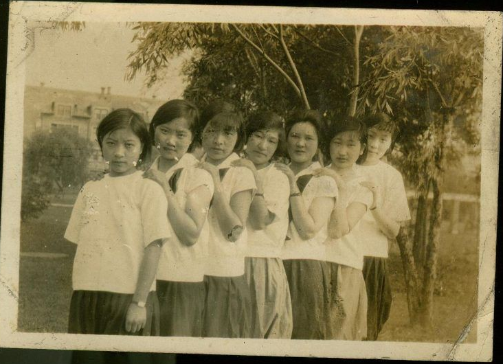 沪江大学女子篮球队队员:樊长松、李嫘、邱*雯、李*献、郭美德等(从左至右)