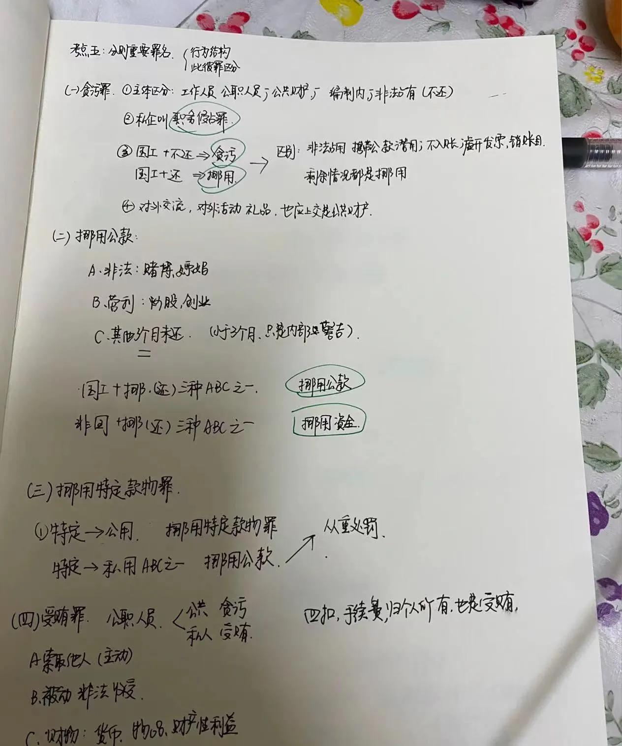 ②学习教材。我的专业课底子不好,就买了课程,每天跟着视频学。我准备了很多A4纸,把重点的知识点、理论,或者大纲里提到的那些理论或者考点抄下来。