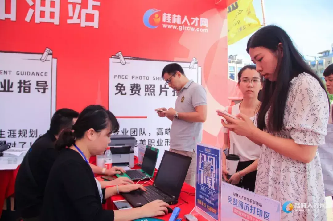 来到招聘会现场后,想免费打印简历,想要免费的职业指导,想免费拍证件照,请认准桂林人才网“求职加油站”!来就对了!