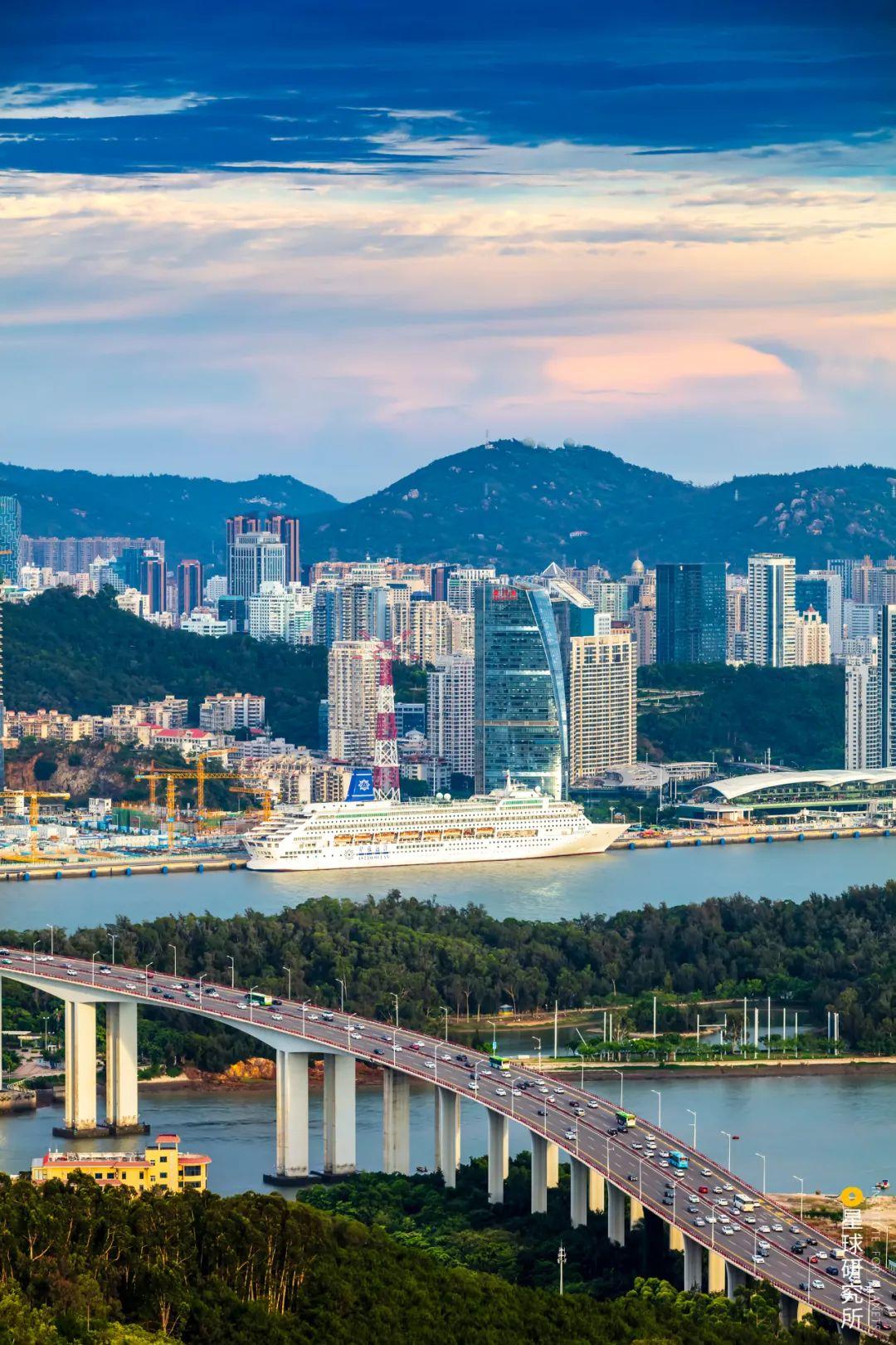 (近处的鼓浪屿轮渡码头和远处的厦门集装箱码头,摄影师@吴伟)