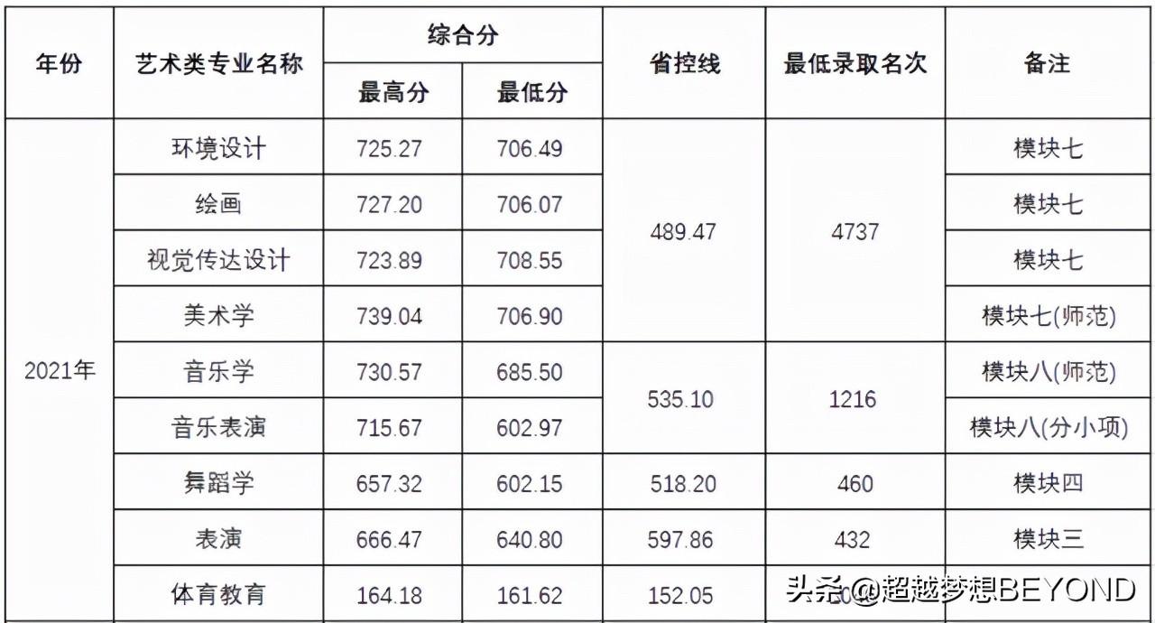 艺术类、体育类各专业录取的最高分、最低分以及最低录取位次等信息统计情况,请看下表。