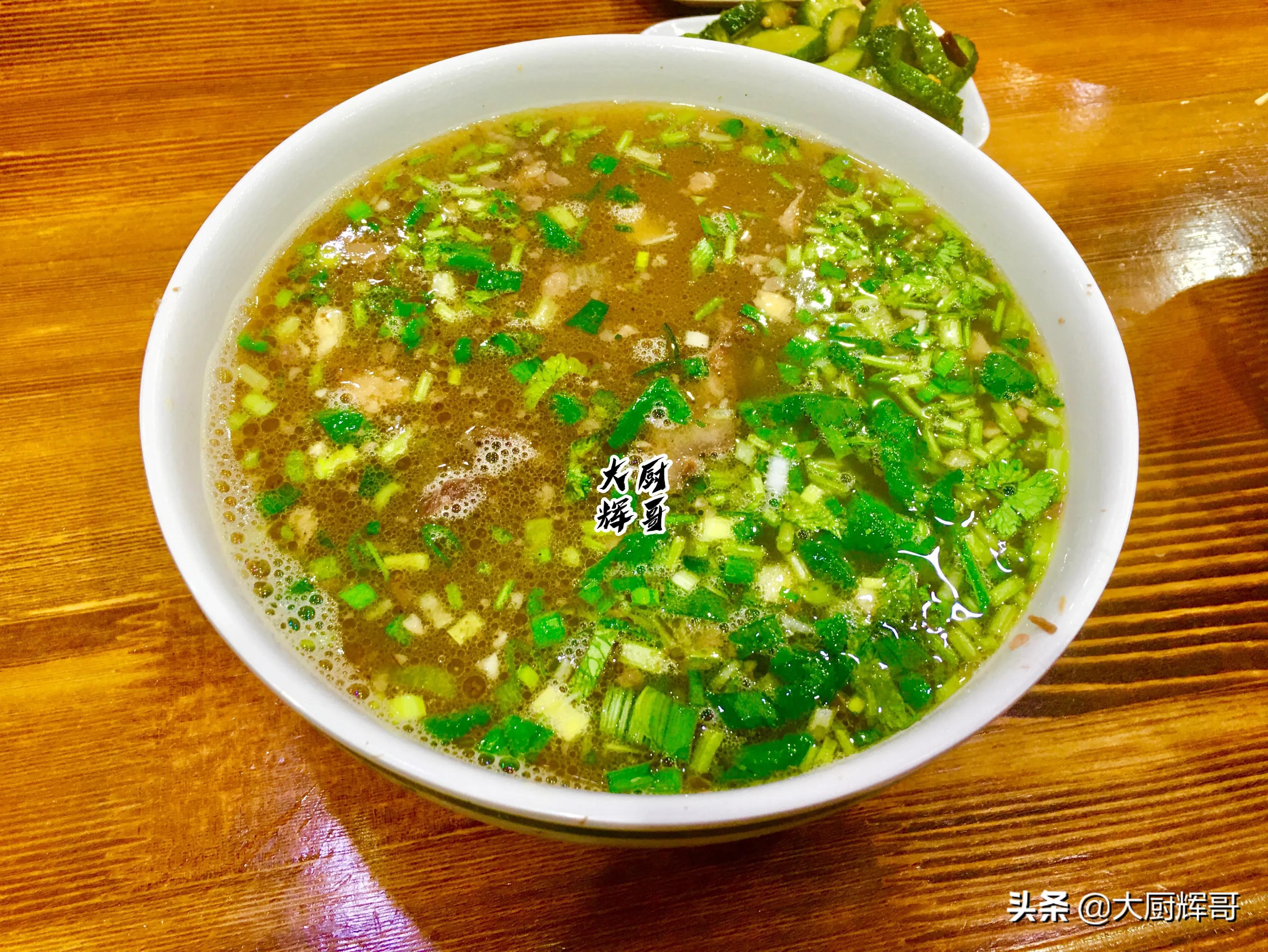 说起牛肉汤的味道和其它地方的不同,是因为这里的牛肉汤和羊肉汤有一个共同点,要放很多的蒜末和香菜提味,以前在别的城市是不放蒜末的。初期是不敢放蒜末的,以为会压味,影响汤的味道,传统意识里汤类的菜肴很少放蒜,但是羹类的放蒜末倒是不稀奇。尝试了几次之后,发现放蒜末的牛肉汤(羊肉汤)味道真的不一样,有一股儿窜鼻子的香气,而且会提升牛肉汤的口感。当然,你点好汤后,店主会提前征询你对蒜末和香菜的意见。