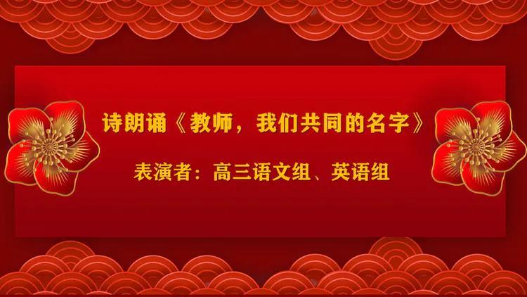 三尺讲台见证着你的辛苦,洁白的粉笔书写了你的一生;你承载着历史的使命,你托举着千家万户的希翼;你无怨无悔,只因你的名字是教师!高三语文、英语组老师们带来诗朗诵《教师,我们共同的名字》