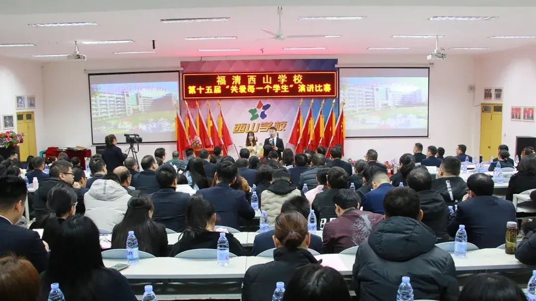 西山学校“关爱每一个学生”演讲比赛旨在进一步弘扬教职工爱岗敬业、无私奉献的高尚师德,宣传教职工管理育人、服务育人的感人事迹,讲述教职工关爱学生的真情实感。比赛每年举行一次,至今已经是第十五届。