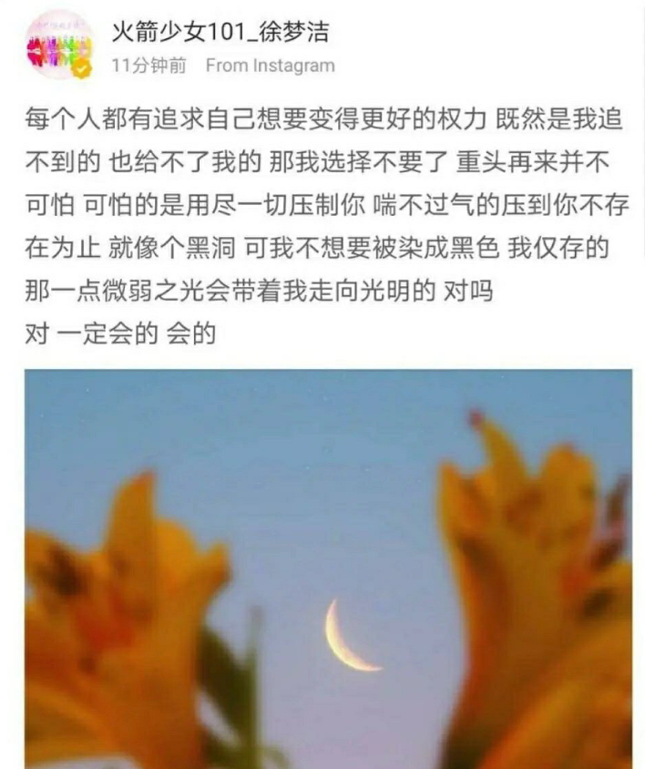 7月10日徐梦洁ins发文,“想要重来却被压制的喘不过来气……”,看起来压力很大的样子↓