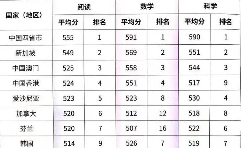 在国际通行的PISA测试(国际学生评估项目)中,中国学生屡获佳绩。这项测试每三年举办一次,以数学、阅读、科学等核心素养考察各国15岁的学生,从而评测各国学生的综合水平。而自2009年上海作为代表城市首次参赛以来,中国学生三次拔得头筹。在2018年的测试中,中国以北京、上海、江苏、浙江组成的代表队更是以三门均超亚军的绝对优势摘下桂冠。