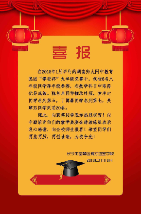 2018年“学用杯”我校一等奖获奖人数长沙市排名第八,一等奖人数占在校人数比例居长沙市第一。
