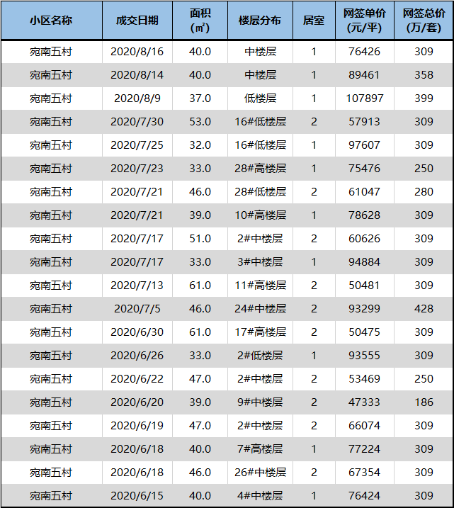 根据数据显示,宛南五村目前挂牌房源共42套,挂牌均价约为99459元/平;近90天内共成交22套,以1居室为主,成交均价约为99514元/平。