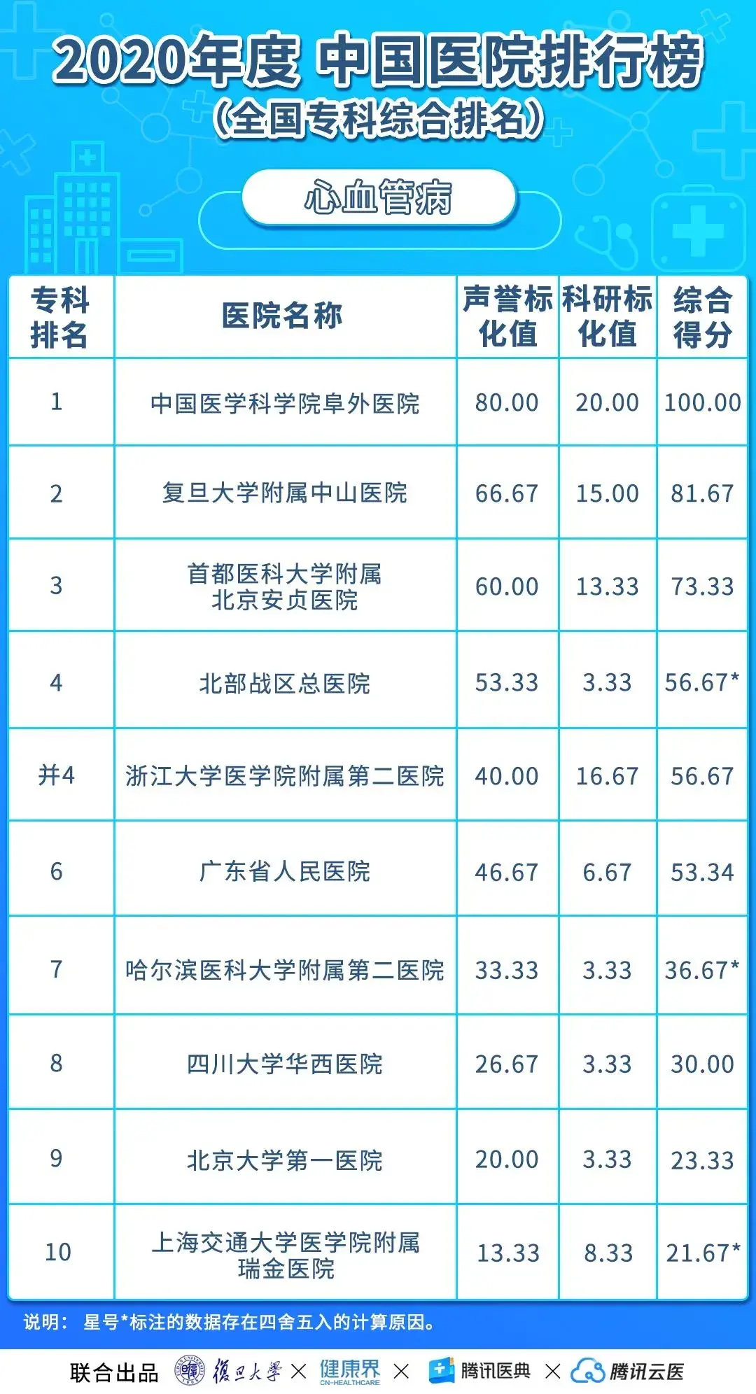 今年复旦大学医院管理研究所,携手健康界、腾讯医典、腾讯云医联合发布了 2020 年度《中国医院专科声誉排行榜》和《中国医院排行榜》。