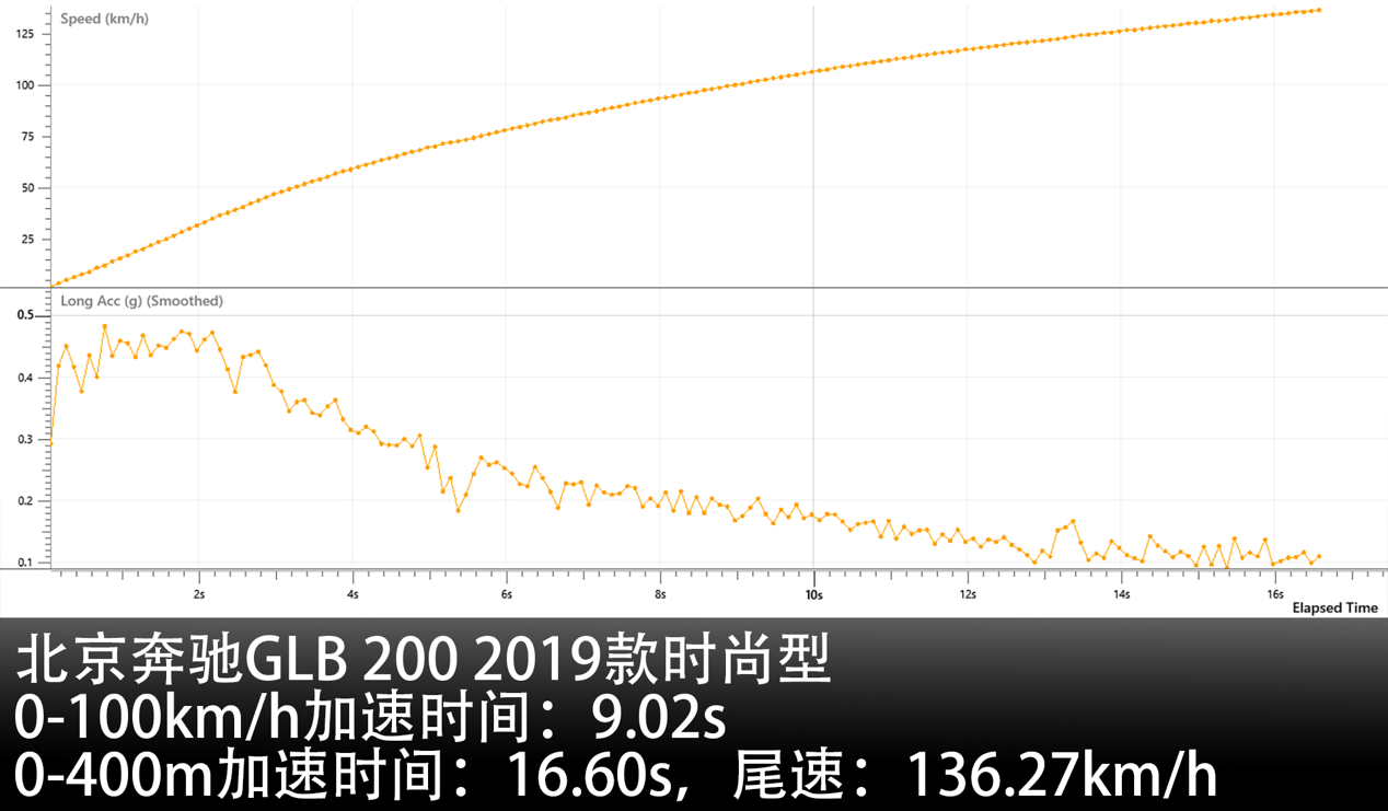 受场地档期影响,本次测试的场地选择了北京锐思赛车学校,气温零下4摄氏度。实测0-100公里/小时的加速时间为9.02秒,0-400米的加速时间为16.60秒,尾速136.27公里/小时。