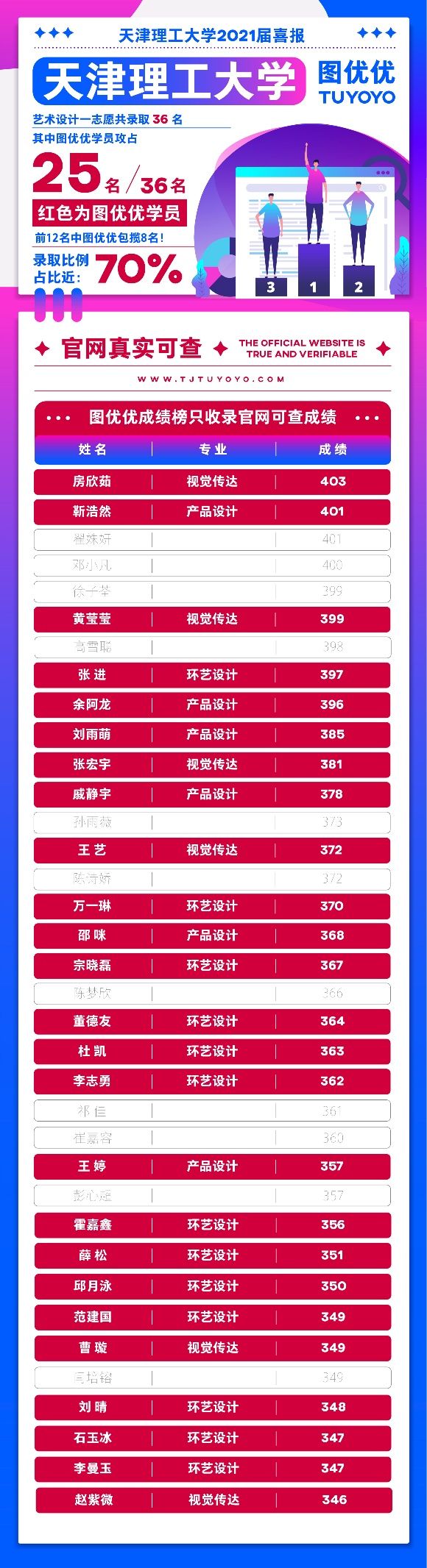 2.从近几年录取考生成绩中可以看出,天津理工大学视觉传达录取分数线基本和国家线持平。也就是说通过国家线就有很大希望被录取了。