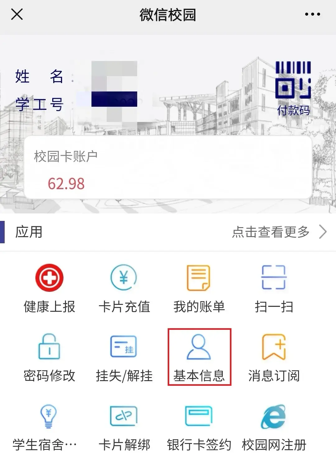 3.1.1 进入河南农业大学信息化办公室微信公众号,点击“基本信息”