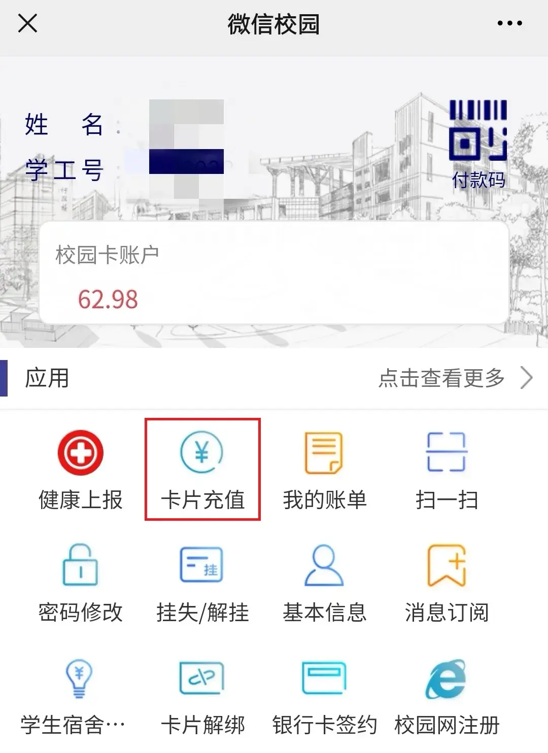 进入公众号后,点击“校园卡”,绑定校园卡。(建议小21们在开学前完成绑定,以免影响校园生活)