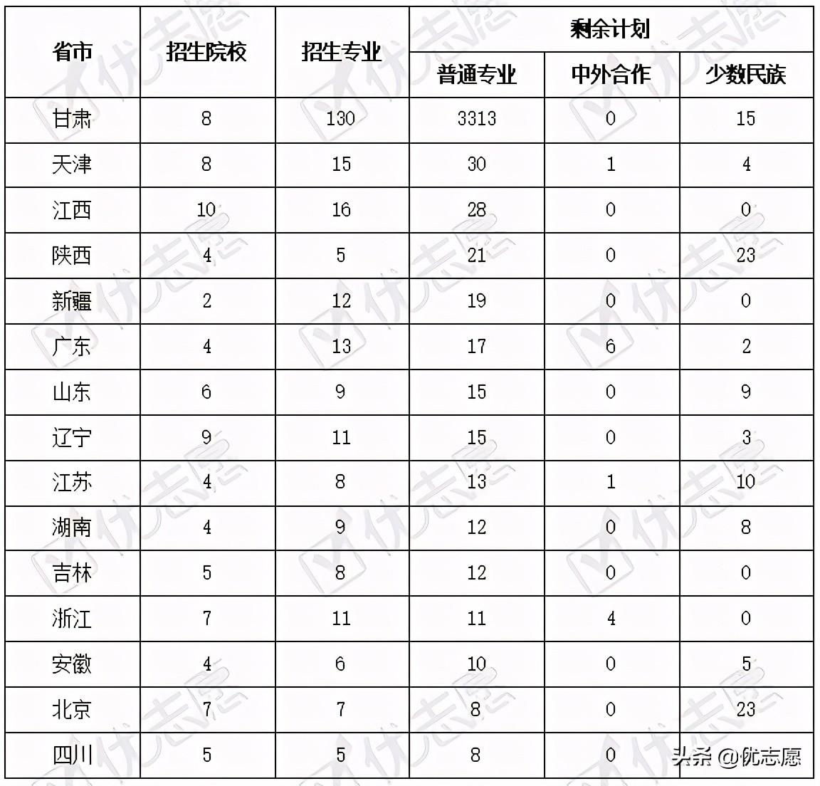 华中科技大学、哈尔滨工业大学、北京理工大学剩余计划均为民族班计划,哈工大只招收566分只招收及以上成绩的考生,华科和北京理工只招收567分及以上成绩的考生。吉林大学的水利类,兰州大学农林经济管理仅需报考的理科生成绩达到一本线。