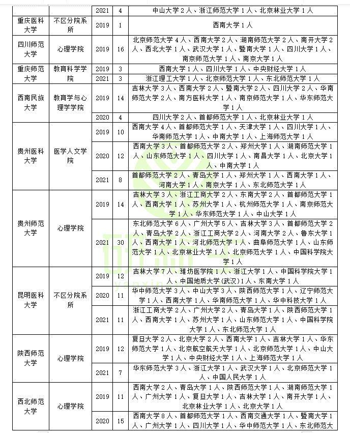 河北:河北大学教育学院、华北理工大学心理与精神卫生学院、承德医学院(不区分院系所)