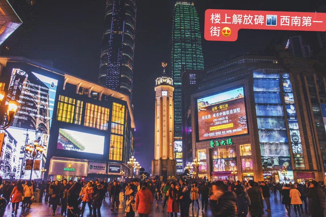 解放碑CBD是具有国际化标准的,集合金融、商业、商贸、信息、文化于一体的商贸中心区,是重庆母城,西南首个千亿级商圈,具有主城其他商圈无法比拟的优势。