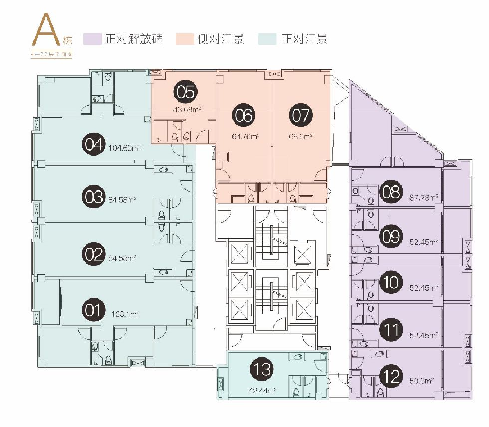 在售户型中,没有任何一个户型有明显短板,要么正对解放碑,要么侧对到江景,要么正对江景,满足你的视觉需求: