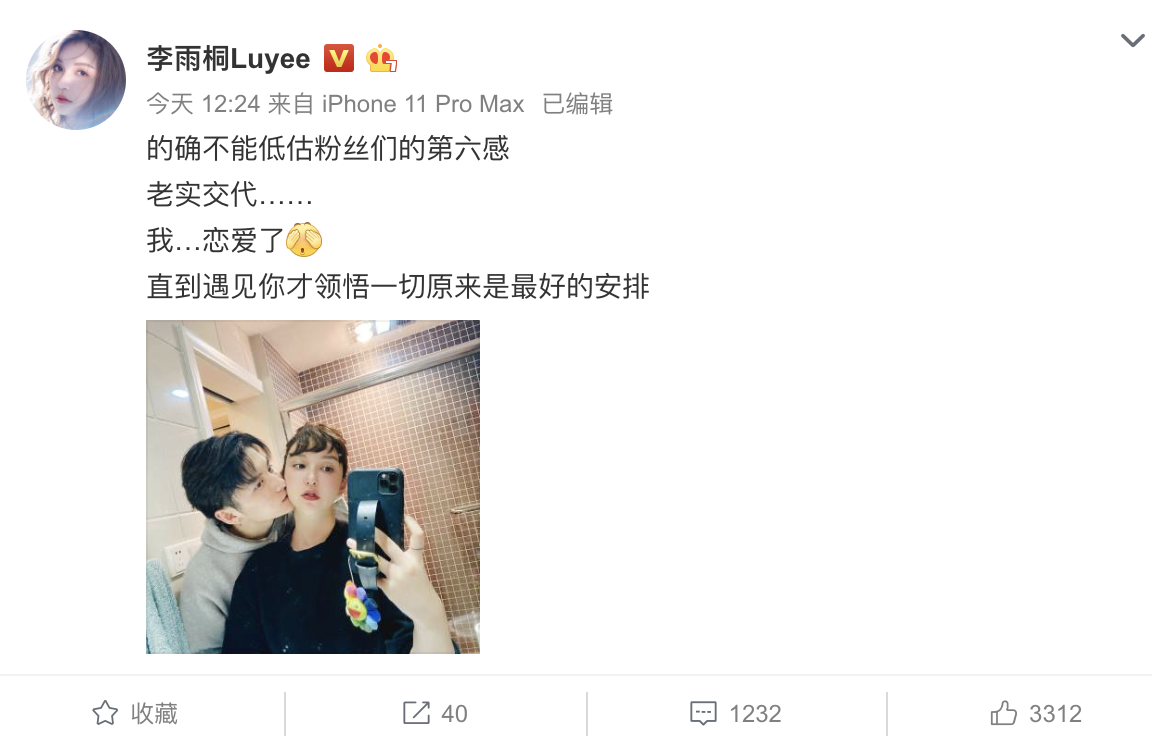 李雨桐恋爱了,正式官宣了。