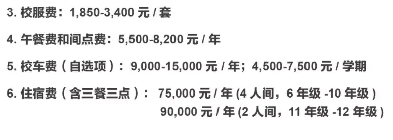 除了以上费用外,还有包括报名申请费、新生费、押金、家校费等入学费用,校服费,考试费用,英语强化班费用(EAL、ESL),书本文具费用,逾期缴费等等。