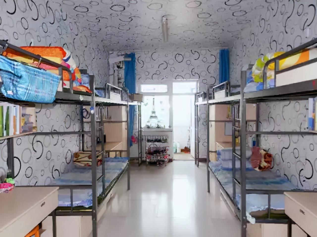 八人间靠窗靠门的地方是上床下桌,中间是一个上下铺,八个床位,四个桌子,也就是两个人公用一张桌子。学校寝室有没有WiFi,要自己去弄,自己买个路由器,开学了去营业厅说一声,过几天就有人来把你安排的明明白白了。