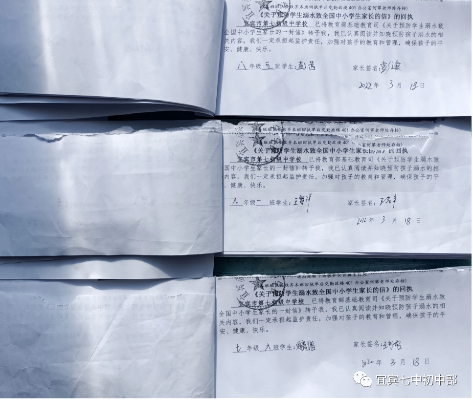 学校全部收回《关于预防学生溺水致全国中小学生家长的信》回执单