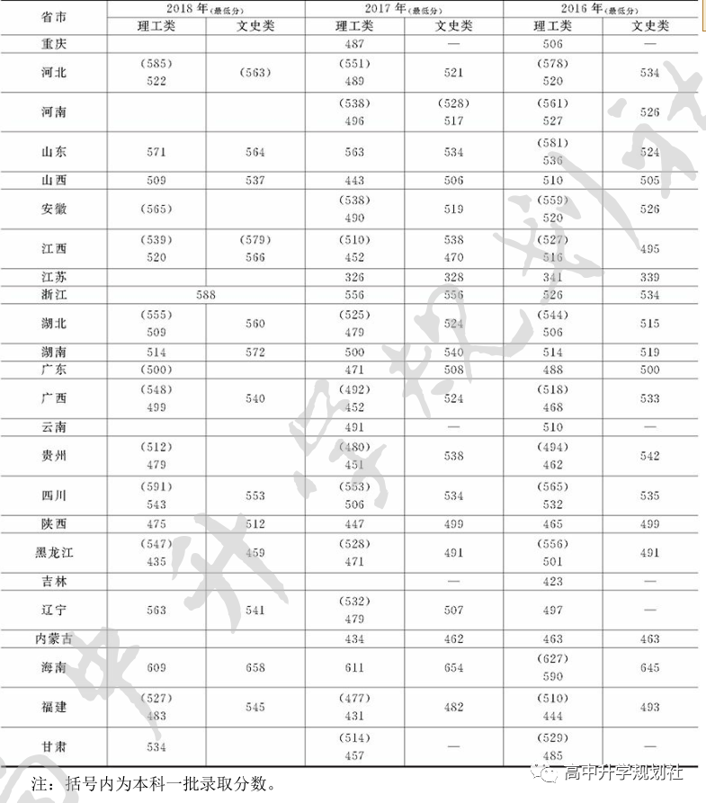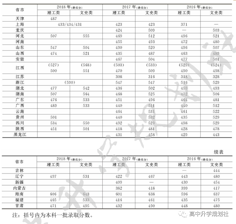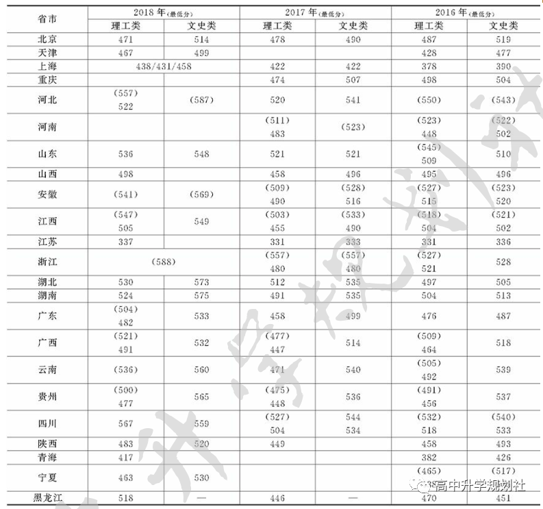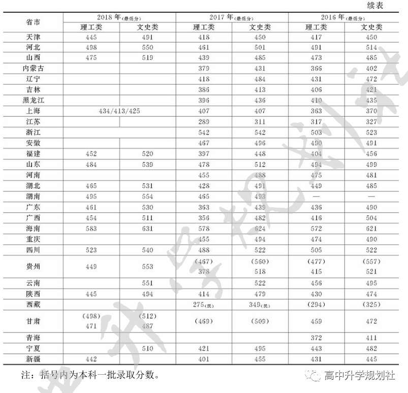 ▼井冈山大学近几年全国各省市录取分数线